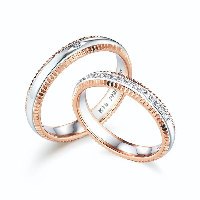 운명 같은 사랑을 반지로 표현한다면 이런 모습일까요? 띠아모타임라인 커플링은 서로 맞물려야 완성되는 톱니바퀴 모티브가 돋보이는 디자인입니다. 띠아모 디자인의 10주년을 기념하는 이 반지는 플래티넘(Pt950)과 18K 핑크 골드의 조화로운 레이어링으로 우아함을 극대화했어요. 정교한 금속 컷팅 기술이 적용되어 다양한 각도에서도 기품 있는 광채를 자랑하는데요. 여성용 반지는 두 가지 스타일로 출시되었습니다. 다이아몬드 세팅이 촘촘하게 더해진 화려한 띠아모타임라인(D)과 모던한 매력의 띠아모타임라인(S). 그녀의 스타일에 맞춰 선택해 보시길.