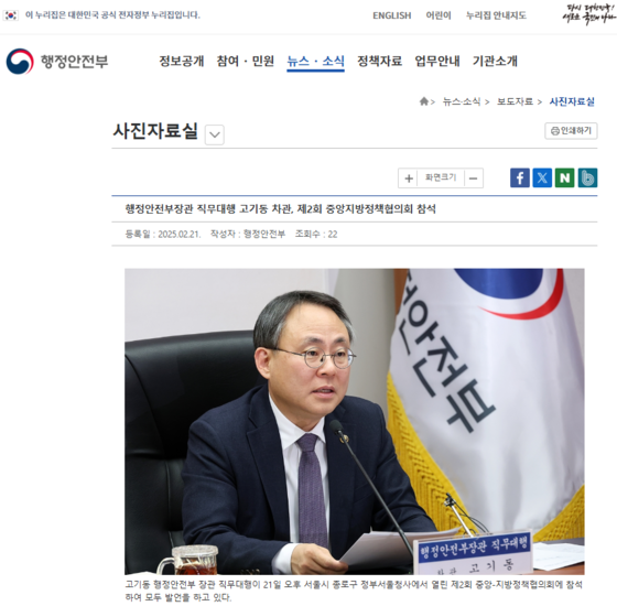 이와 관련해 고기동 행안부 장관 직무대행은 "대내외의 불확실한 상황으로 민생 부담이 가중되지 않도록 대책을 신속하게 추진해 체감경기를 빠르게 개선하는 것이 중요하다"면서 "중앙과 지방이 협력해 분야별 대책을 현장에서 신속히 이행해 달라"고 당부했다.