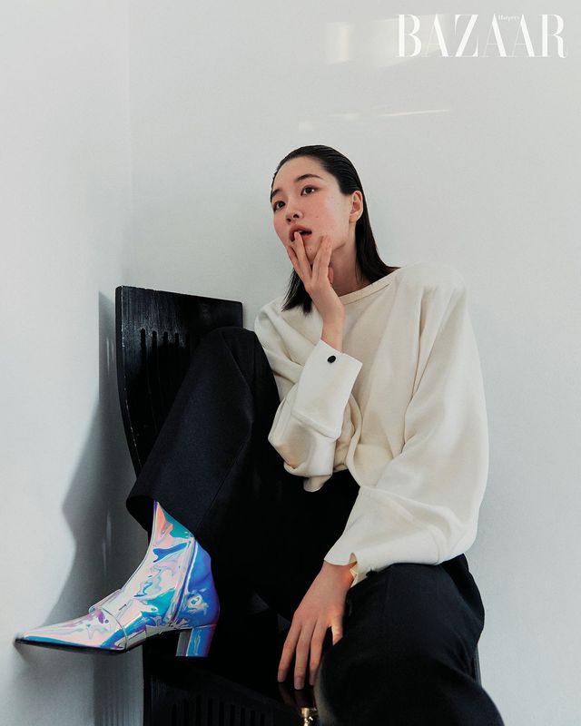 하퍼스 바자 지금 촬영 중인 시리즈 〈메이드 인 코리아〉는 1970년대 현대사를 다루죠. 로비스트 최유지 역할을 맡았는데, 색다른 이미지를 보게 될 것 같다는 기대가 있어요. 처음 시나리오 봤을 때 어땠어요?