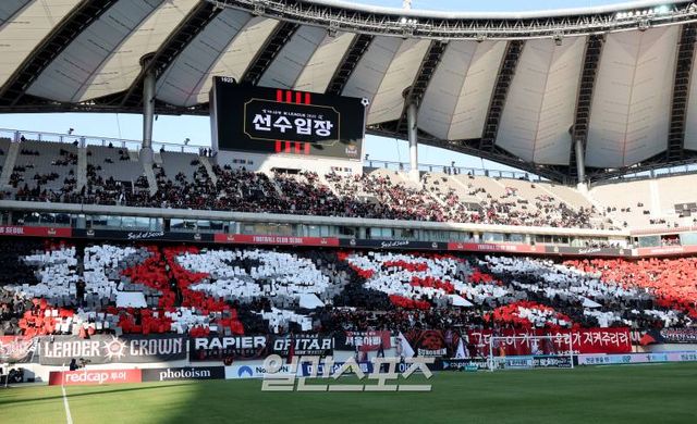 서울의 카드섹션이 진행되자, 5000명 규모의 안양 팬들은 야유를 퍼부었다.