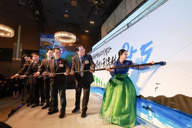 [투어코리아=유경훈 이창식 기자] 전남 완도군이 1천만 관광객 시대를 열기 위한 포문으로 21일 서울 중구 더 플라자 서울 호텔에서 ‘2025 완도 방문의 해’ 선포식을 개최하면서 퍼포먼스를 갖고 있다.