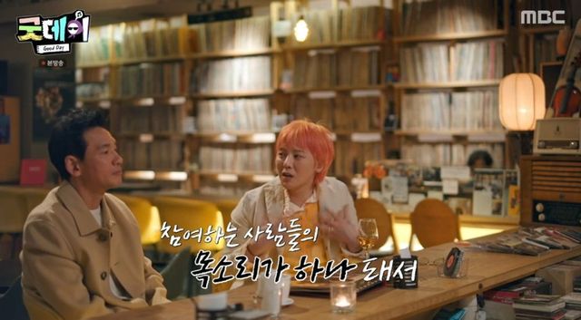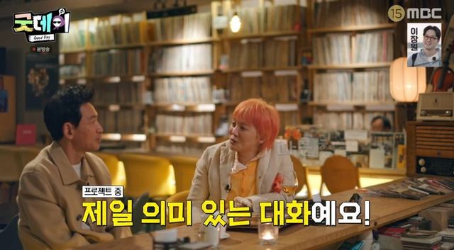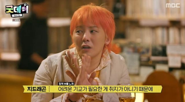 이날 지드래곤은 나이차를 초월한 친구 황정민을 만나 뮤직토크를 나눴다. 황정민과 ‘굿데이’ 선곡에 나선 지드래곤은 015B의 ‘아주 오래된 연인들’을 듣고는 “진짜 실험적인 노래다. 자신감이 있어야 만들 수 있는 곡이다. 노래가 텅 비어 있지 않나. 요즘은 조금이라도 남으면 안 된다. 뭘 넣어야 할 것 같다”라고 평했다.