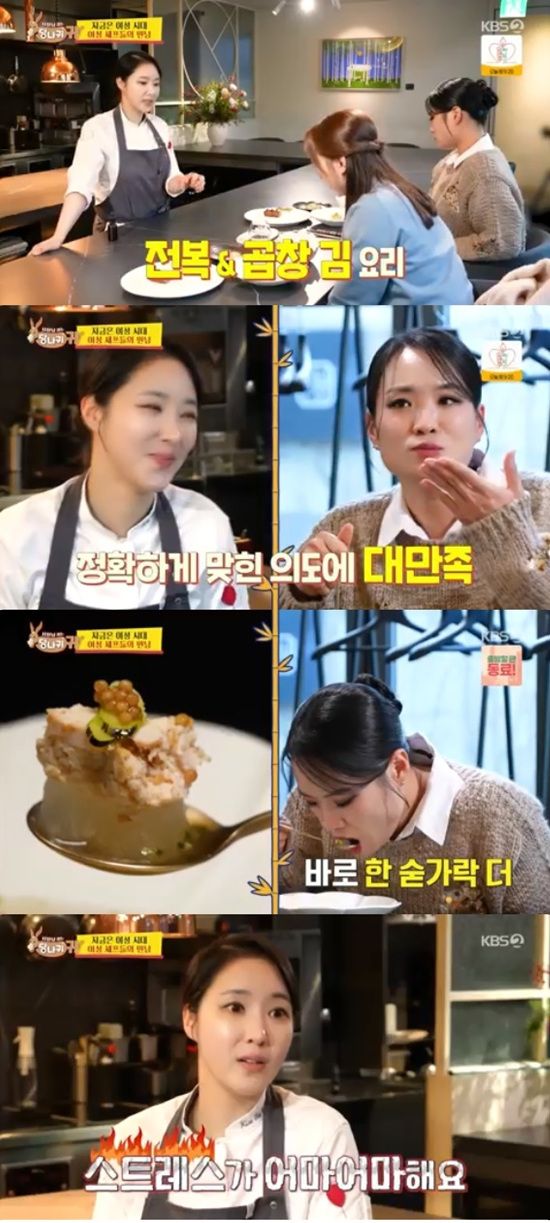 김희은은 전복 요리 소개를 앞두고 "제가 가장 자신 있는 요리가 전복과 곱창 김이다"라고 말했다.