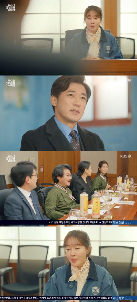 23일 방송된 KBS 2TV 주말드라마 '독수리 5형제를 부탁해!'(이하 '독수리 5형제') 8회에서는 마광숙(엄지원 분)이 한동석(안재욱)이 LX호텔 회장이라는 사실을 알게 된 모습이 그려졌다.