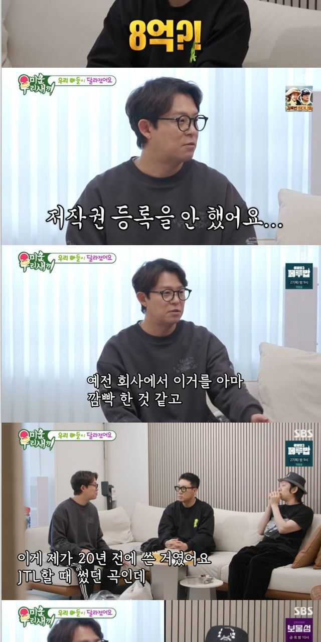 이상민은 "원곡자가 너라고 뜨기 시작하더라"라고 말했다. 토니안은 "8000만 뷰가 나왔더라"라고 했고, 김희철은 "10원씩만 해도 8억인데?"라며 놀랐다.