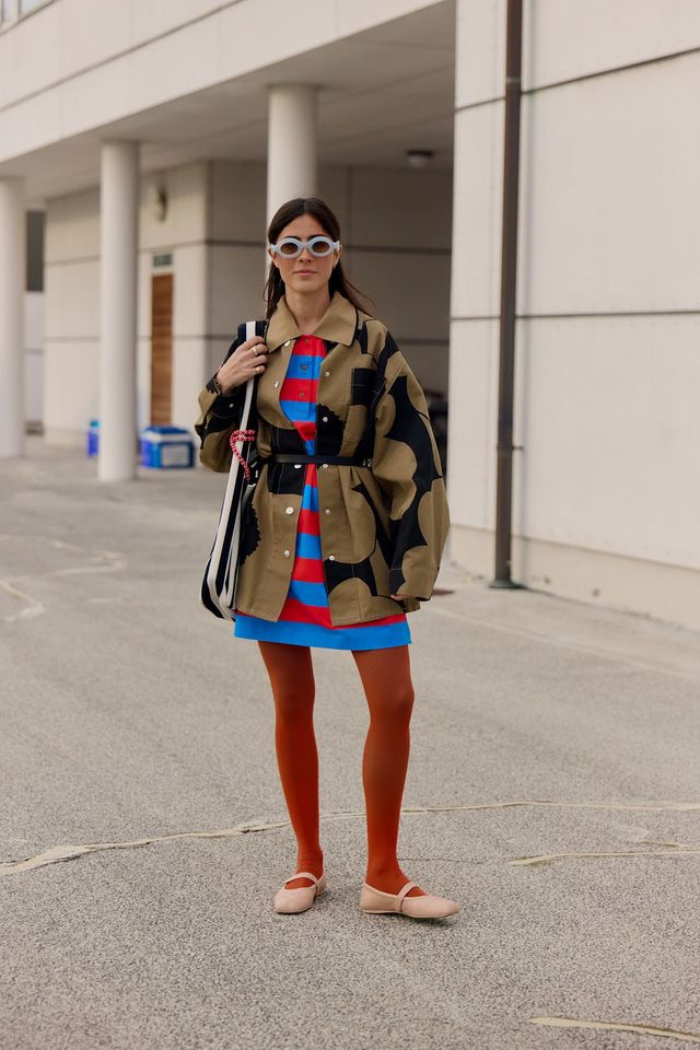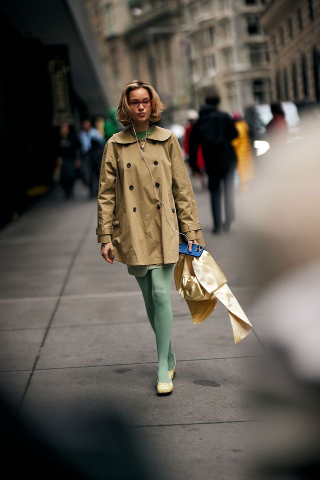 그 밖에도 베이지 톤 트렌치코트와 잘 어울리는 민트 컬러 스타킹부터리듬감 있는 입체적인 컬러 스트라이프와의 조화까지, 올봄에는 패션위크 스트리트에서 포착된 스타킹의 자유로운 변신을 참고해볼까요?