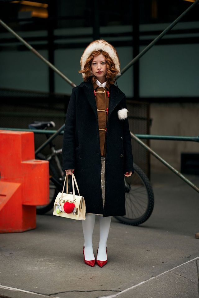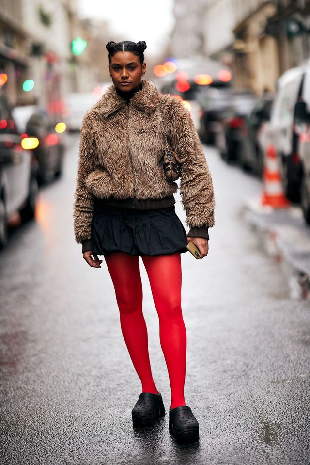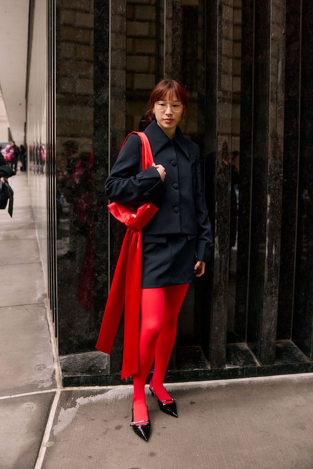보다 과감한 룩에 도전하고 싶다면 티파니 슈의 레드 스타킹 스타일링을 참고해보세요. 두툼한 퍼 코트와 레드 스타킹의 조합이 예사롭지 않은 오라를 자랑하죠? 과감한 레드에는 역시 그에 걸맞는 용기 있는 스타일링이 필수입니다. 블랙 미니스커트 세트업에 레드 스타킹을 신고, 또 하나의 개성 넘치는 레드 컬러 백으로 드라마틱한 분위기를 연출하는 것도 방법이겠네요.