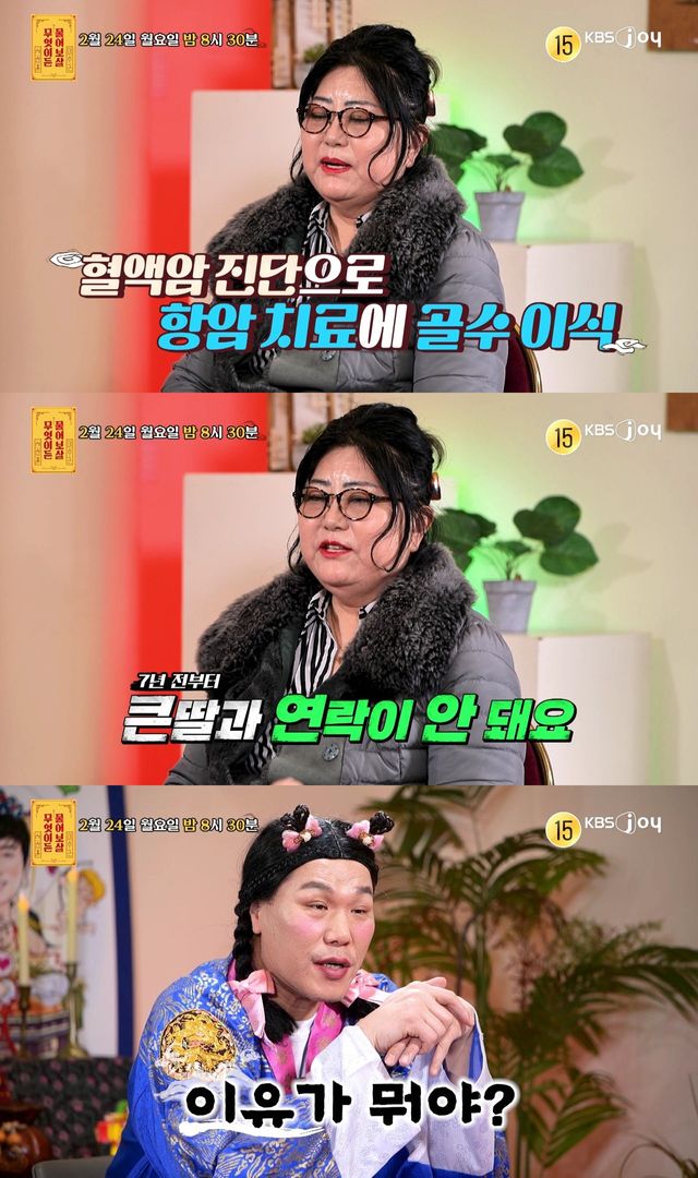 24일 방송하는 KBS Joy '무엇이든 물어보살'(이하 '물어보살')에는 7년째 연락이 끊긴 큰딸과 화해하고 싶다는 사연자가 출연한다.