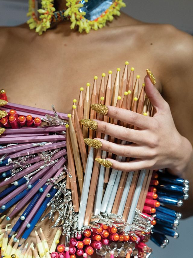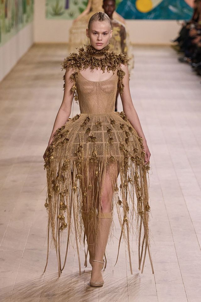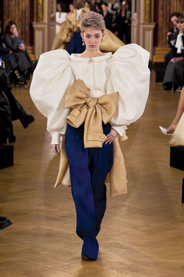 세대를 넘어 전해지는 오트 쿠튀르 의상은 하나하나 손으로 정교하게 봉제되며 고급 소재로 몇 점만 제작, 그 자체로 자연스럽게 지속가능한 가치를 지닌다. 이로 인해 오트 쿠튀르 메종은 프레타 포르테 브랜드처럼 친환경 소재를 사용하는 것과 같은 직관적 방식을 취하진 않는다. 그럼에도 불구하고 매 시즌 친환경 소재를 조화롭게 활용하는 브랜드들이 있다. 스키아파렐리는 한 골동품 가게에서 발견한 1920~30년대 리본을 활용해 이번 컬렉션을 완성했다. ‘재활용한 소재로는 모던한 스타일을 만들어야 한다는 편견에 오히려 상상력을 잃어버린 것은 아닐까?’라는 질문에서 출발한 컬렉션은 바로크적이고 화려한 스타일로 탄생했다. 빛바랜 색 또한 그대로 활용해 한 세기 전의 스타일을 그대로 소환했다. 로날드 반 더 캠프는 빈티지와 잉여 소재, 재활용 섬유를 사용한 디자인을 선보이고 있으며, 이는 전통 장인의 손끝에서 펼쳐진다. 이 외에도 제르마니에, 엘리 사브, 피트 둘라르트 등이 지속가능한 접근을 지속하고 있다.