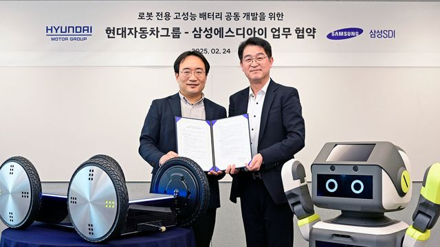 현대자동차와 기아가 삼성SDI와 손잡고 에너지 밀도를 높이고 출력과 사용 시간을 늘린 로봇 전용 고성능 배터리를 공동 개발한다. 이를 위해 세 회사는 지난 24일 '로봇 전용 배터리 공동 개발을 위한 업무협약(MOU)'를 체결했다.