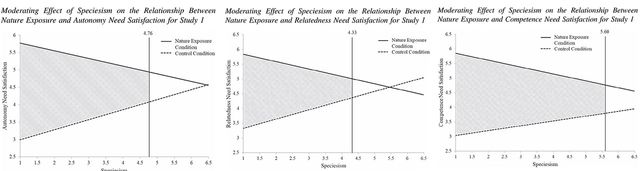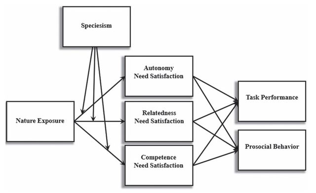 연구 결과, 자연 환경을 경험한 집단은 그렇지 않은 집단에 비해 자율성과 관계성, 유능감을 느낄 확률이 높았다. 그런데, 이 효과는 종 차별(speciesism)이 낮은 사람에게만 나타났다. 인간은 만물의 영장이기에 다른 개체는 열등하고 인간만이 우월하다고 믿는 종 차별이 강한 사람들에게서는 자연이 주는 긍정적 효과가 나타나지 않았다.