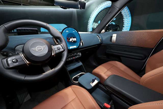 뉴 미니 컨트리맨의 실내 디자인은 차량 업계 최초로 적용된 원형 OLED(유기발광다이오드) 디스플레이를 중심으로 독창적이고 신선한 이미지를 구현했다는 평가를 받았다. 해당 디스플레이는 삼성디스플레이와 협업해 개발됐으며, 대시보드 중앙에 위치해 직관적인 조작성과 선명한 화질, 빠른 반응 속도를 자랑한다.