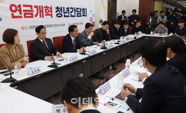 국민의힘은 이날 서울 여의도 국회에서 ‘2030 세대와 연금개혁 청년간담회 개최했다. 권성동 원내대표는 “청년들은 가장 오랜 기간 연금을 납부해야 하는 세대”라며 “청년 세대가 최대한 혜택을 받을 수 있도록 연금 구조를 종합적으로 개혁해야 한다”고 강조했다.