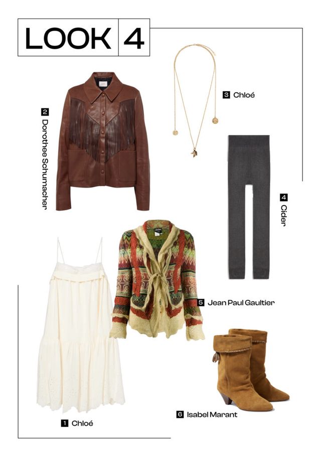 트렌디한 웨스턴 무드의 룩을 완성하고 싶다면 프린지 디테일이 돋보이는 레더 재킷을 활용해 보세요. 자연스럽게 흐르는 프린지가 움직일 때마다 경쾌하고 자유로운 분위기를 연출해 줍니다. 여기에 빈티지한 감성이 느껴지는 원피스와 웨스턴 부츠를 더하면 한층 완성도 높은 스타일이 완성돼요. 짧은 원피스가 부담스럽거나 바람이 차가운 날엔 레깅스와 루스한 가디건을 함께 매치해 보세요. 레이어드 아이템을 활용한다면 2월에도 멋스러운 웨스턴 무드를 즐길 수 있을 겁니다.