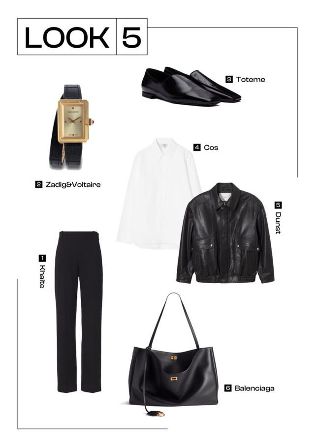 모노톤의 세련된 출근룩을 찾고 있다면 주목할 것! 레더 재킷은 출근 룩으로도 손색 없는 아이템으로 미니멀한 셔츠와 블랙 와이드 팬츠와 매치해도 최고의 궁합을 자랑해요. 심플한 아이템과 매치한 만큼, 재킷은 솔리드 패턴보다는 포켓 디테일이 들어간 디자인을 추천할게요. 한층 더 감각적인 무드가 배가될 겁니다. 날씨가 쌀쌀한 날에는 셔츠 안에 터틀넥 티셔츠를 레이어드 해주면 스타일과 보온성 모두 챙긴 룩을 완성할 수 있어요.