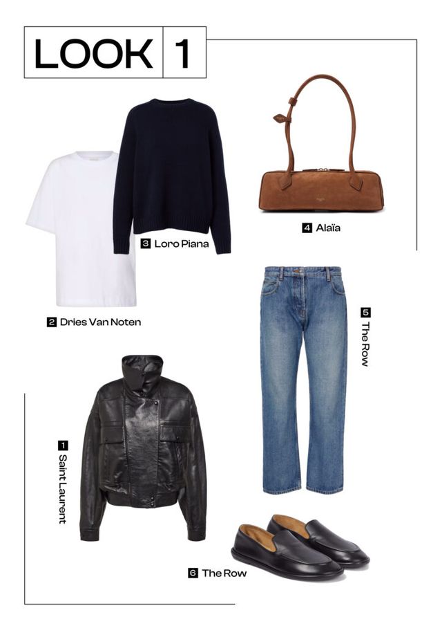 레더 재킷의 가장 큰 장점은 클래식한 아이템만으로도 충분히 멋스러운 룩을 연출할 수 있다는 겁니다. 스트레이트 핏 데님 팬츠에 레더 소재의 페니 로퍼만 매치해도 시크한 분위기를 자아내죠. 여기에 스웨터를 함께 매치한다면 보온성까지 챙긴 룩을 완성할 수 있어요. 이때 룩의 완성도를 높일 수 있는 작은 팁은 스웨터 안에 화이트 티셔츠를 살짝 레이어드하는 겁니다. 레더 재킷 아래로 은은하게 보이는 화이트 컬러가 룩의 밸런스를 잡아주면서 더욱 쿨한 무드를 연출해 줄 거예요.