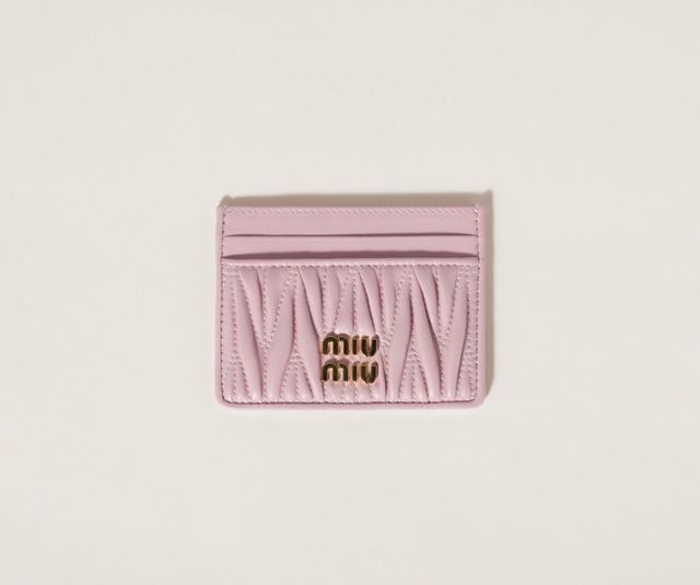 고급스러운 주름 텍스처가 매력적인 미우미우 마테라쎄 카드 홀더. 마테라쎄 가죽과 전면의 골드 메탈 로고 디테일이 브랜드의 정체성을 드러내는데요. 은은한 앨러배스터 핑크 컬러로 출시돼, 여성스러운 감성이 한층 더 강조됐습니다. 콤팩트한 사이즈임에도 불구하고 실용적인 수납력까지 갖춘, 데일리로 사용하기 좋은 카드 지갑입니다.