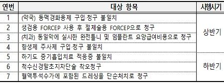 우선, 3월부터 약국의 ‘동맥경화용제 구입․청구 불일치(약 300개소)’ 항목과 ‘생검용 FORCEP 사용 후 절제술용 FORCEP으로 청구(약 180개소)’ 항목에 대하여 부당․착오 청구 개연성이 높은 병·의원을 자율점검 대상기관으로 통보한다는 계획이다.