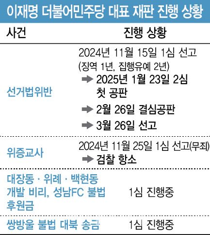 재판부는 이 대표 선고 날짜를 다음 달 26일 오후2시로 정했다.
