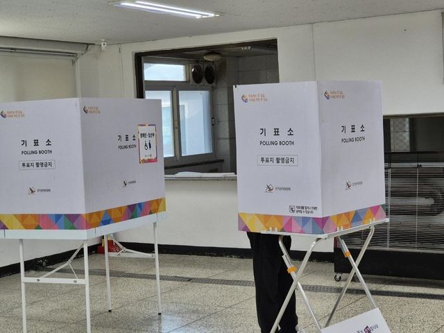 김진하 강원 양양군수의 주민소환 본투표일인 26일 오전 투표소를 찾은 주민이 기표소에서 한 표를 행사하고 있다. / 뉴스1