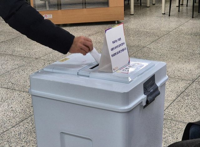 김진하 강원 양양군수의 주민소환 본투표일인 26일 오전 투표소에서 투표를 마친 주민이 투표함에 투표용지를 넣고 있다. / 뉴스1