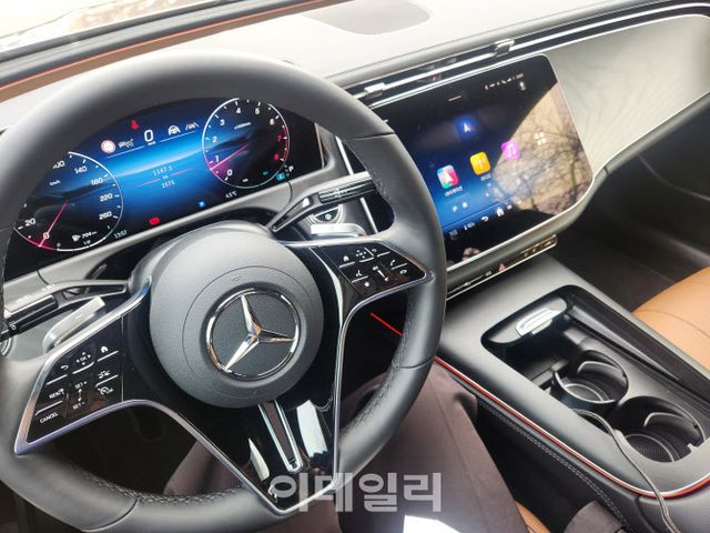 운전석에 앉으니 14.4인치에 달하는 고해상도 중앙 디스플레이와 디지털 클러스터가 눈에 들어왔다. 마치 태블릿 PC를 배치한 듯한 느낌이었다. 디스플레이 속에는 첨단 디지털 요소가 대거 적용됐다. 유튜브, 비발디 등 영상을 볼 수 있는 제3자 개발 애플리케이션(앱)뿐만 아니라 에센셜, 웨이브 등 국내 엔터테인먼트 앱이 추가돼 편하게 이용 가능하다. E 200 아방가르드는 티맵 오토 네비게이션도 탑재하고 있다.