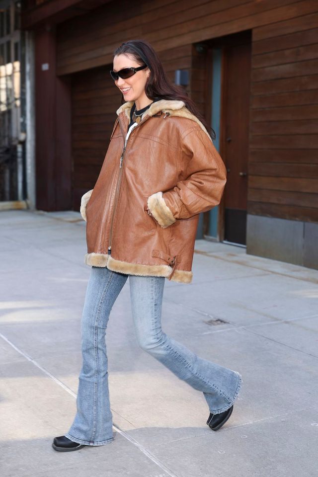 엘사 호스크는 플레어 데님이 포멀한 상의에 더 멋스럽게 어울린다는 사실을 잘 알고 있습니다. 발 끝까지 완벽하게 핏 되는 플레어 데님을 입고 구조적인 재킷과 타이를 매치한 그녀. 스틸레토 힐 덕분에 더욱 날 선 스타일링이 완성됐습니다.