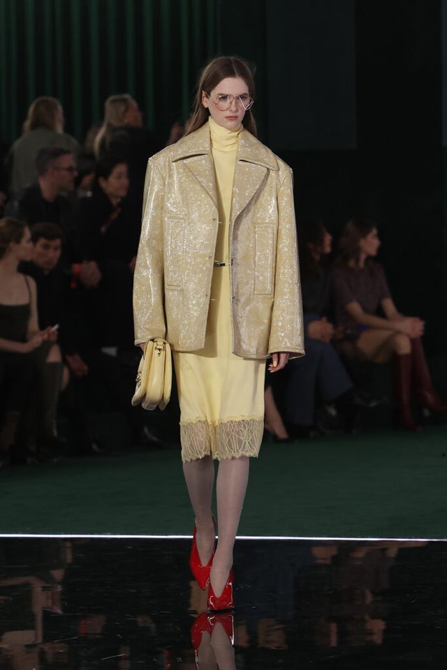 또한, 클래식한 브리티시 테일러링의 상징인 슬럽 트위드(Slubbed Tweed)가 크레이프 셔츠와 블라우스의 패턴 속에서 유려하게 표현되며 신선한 매력을 선사했습니다. 소재의 조합에서도 실험적인 감각이 돋보였는데요. 브러시드 모헤어 셔츠, 마더 오브 펄 가죽, 코팅 울, 본디드 부클 등 다양한 텍스처가 어우러지며 구조적이면서도 자연스러운 실루엣을 완성했습니다.
