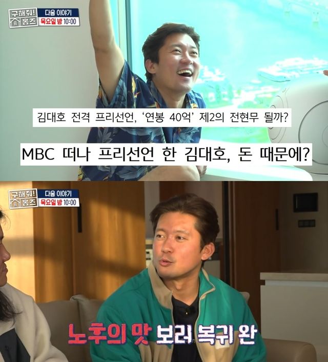 27일 MBC '구해줘! 홈즈' 방송 말미 공개된 다음 화 예고편에서는 최근 MBC를 퇴사하고 프리랜서를 선언한 김대호 아나운서가 등장해 눈길을 끌었다.