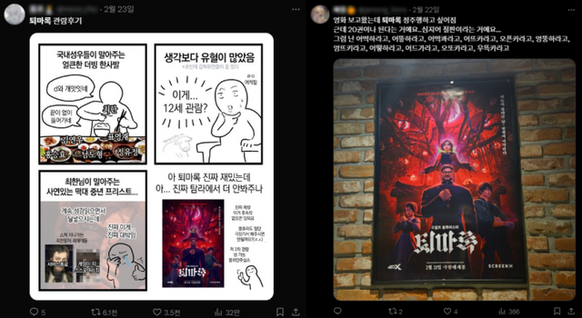 밈(meme)을 통한 활발한 온라인 입소문도 눈에 띈다. 관객들은 팬아트나 만화로 자신의 감상 후기를 그리는가 하면, ‘퇴마록’의 상영시간을 ‘85년’이라고 잘못 기재한 한 극장 상영 시간표를 담은 한 누리꾼의 X(구 트위터) 게시글은 재치있는 반응을 파생하며 1만 4000회 이상 재게시됐다. 일종의 놀이처럼 작품을 향한 호기심을 건드리며 관객층을 확대·유입시키는 양상은 마치 일본 애니메이션 흥행작 ‘더 퍼스트 슬램덩크’(2023) 개봉 당시도 연상된다.