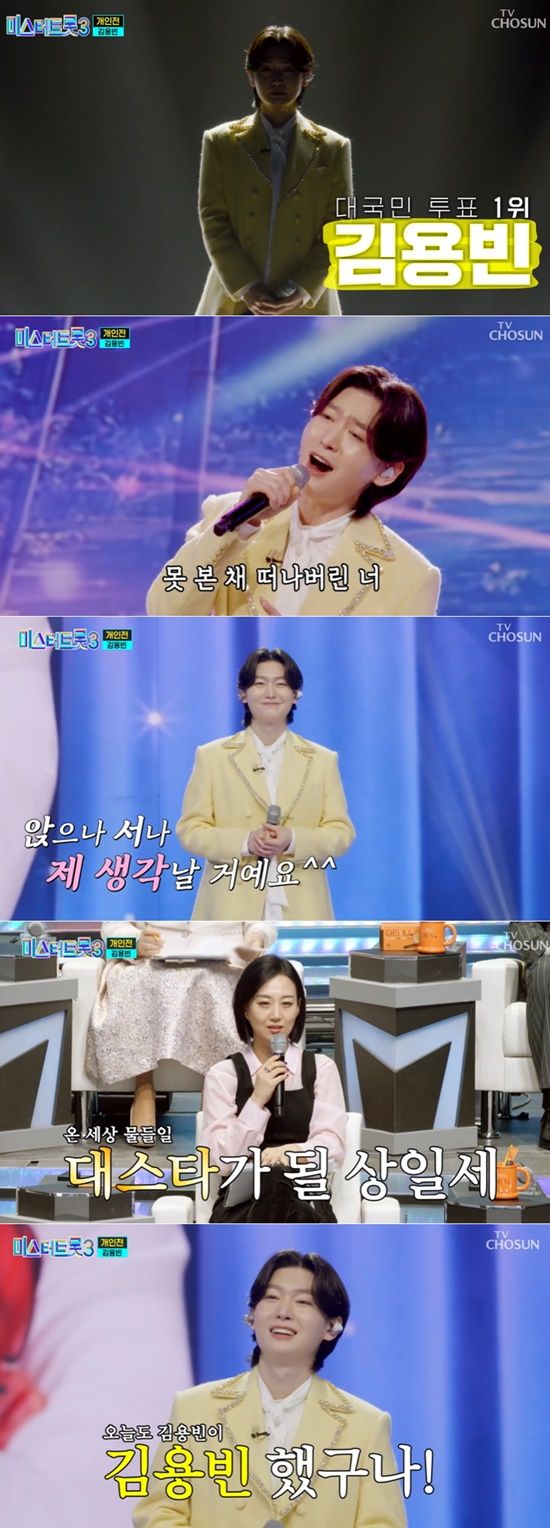 김용빈은 지난 27일 방송된 TV조선 '미스터트롯3'에서 대국민 응원투표 1위를 기록하며 독보적인 인기를 과시했다.
