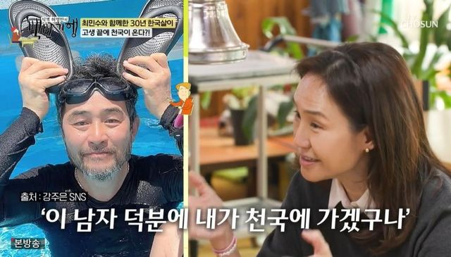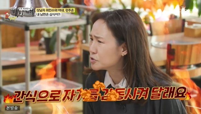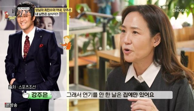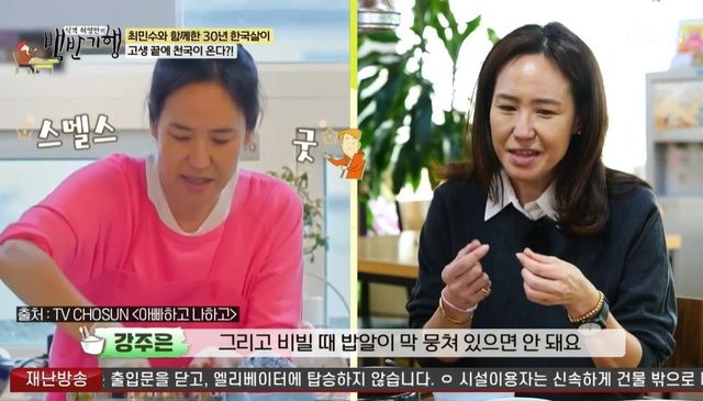 허영만이 “주부라 부엌에 있는 시간이 많지 않냐”고 묻자 강주은은 “(결혼) 초창기엔 부엌에만 있었다. 남편이 연기 생활하니까 연기 안 한 날은 집에만 있는다. 아침, 점심, 저녁 다 챙겨야 한다”고 폭로했다. 이어 강주은은 “그뿐만이 아니다. 그 사이엔 간식을 먹는다. 자기가 알려주면 좋은데, 간식도 자기를 감동시켜 달라더라. 듣기만 해도 알겠죠? 제가 어떤 (고충을 겪었는지)”라며 말을 잇지 못했다.