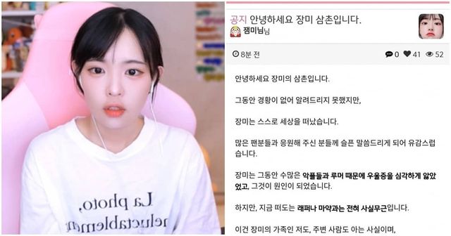 이후 온라인에서 잼미의 극단 선택에 뻑가의 책임이 있다는 지적이 쏟아지자 그는 사과 영상을 올리고 활동을 중단했다가 6개월 만에 복귀했습니다.