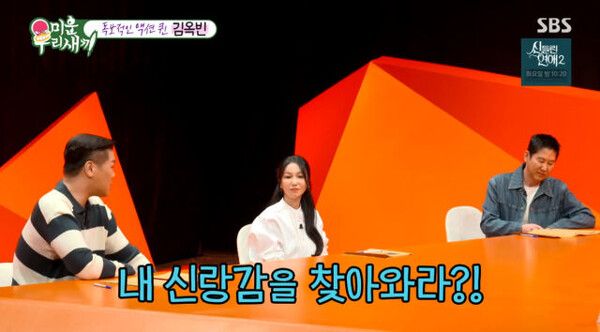 이어 김옥빈은 "동생이 결혼할 때 빼앗기는 기분이 들었다"며 "결혼 조건으로 신랑을 찾아오라는 조건을 걸었다"고 밝혔다. 그는 "축사를 하면서 너희들이 결혼하고 나서 가장 먼저 해야 할 일은 내 신랑감을 찾는 것이라고 했다"며 "결혼식 끝나고 계속 소개팅 자리를 주선하던데 쉽지가 않더라"라고 말했다.