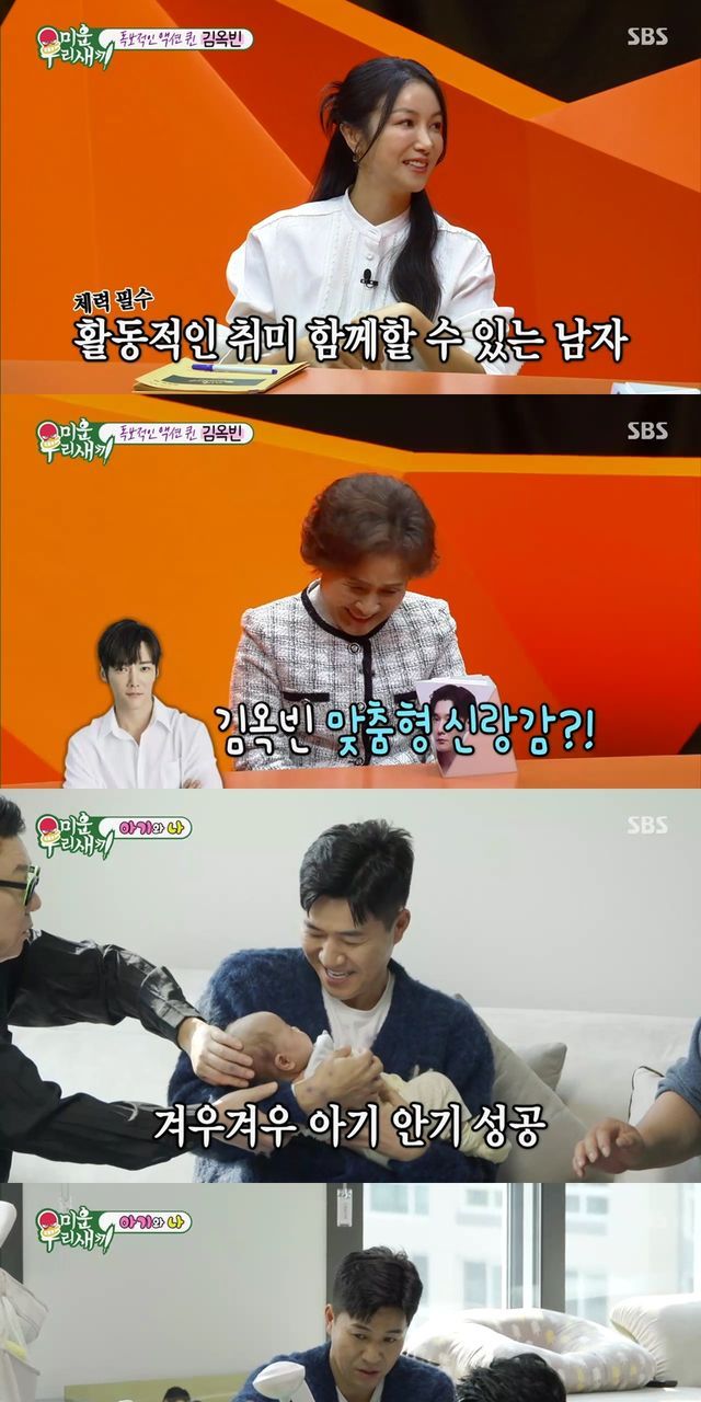 지난 2일 방송된 SBS '미운우리새끼'(이하 '미우새')에는 예능 '정글밥 2- 페루밥'으로 예능에 도전한 배우 김옥빈이 스페셜 MC로 출연했다. 미모로 유명한 세 자매 중 맏이인 김옥빈은 "동생 결혼식에서 축사로 '결혼 후 가장 첫 번째로 할 일은 내 신랑감을 찾아오는 것'이라고 말했다. 제 이상형은 '리드당해 주는 체력 좋은 남자'다. 제가 하고 싶은 걸 함께해 줄 수 있는 체력 좋은 사람이 필요하다"라고 고백했고, 서장훈은 "미우새 아들 중 최진혁이 엄마한테 그동안 평생 리드당해 왔다. 딱이다"라며 적극 추천했다. 진혁 母 역시 "제가 원하는 당찬 며느리 상이다. 기회 되면 (아들을) 한 번 만나봐 달라"라며 흐뭇해했다.