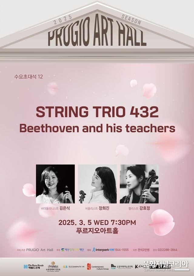 이번 무대는 바이올리니스트 김은식, 비올리스트 장희진, 첼리스트 강효정이 함께하는 <스트링 트리오 432>의 공연으로, 고전주의 시대 작품을 통해 바이올린, 비올라, 첼로의 음악적 대화를 선보입니다.