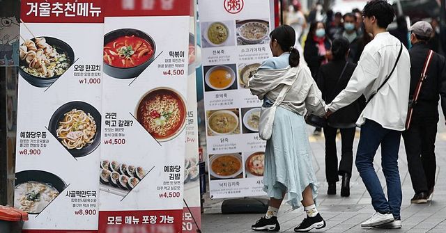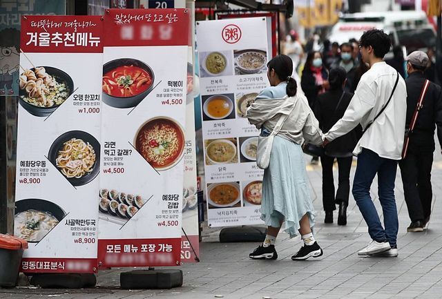 서울 중구 명동거리 음식점 앞에 메뉴 안내판이 놓여 있다. 기사 이해를 돕기 위한 자료 사진 / 뉴스1