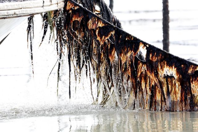 2024년 1월 26일 전남 신안군 압해읍 앞바다의 지주식 김양식장에서 어민들의 배에 올라오는 물김의 모습이 보이고 있다 / 뉴스1