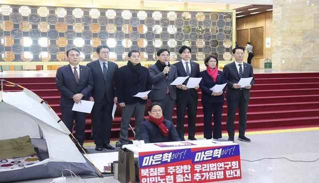송언석 위원장은 "마은혁 후보자는 여야합의가 아닌, 절대 다수 의석의 더불어민주당이 일방적으로 추천한 인물로 마은혁후보 임명을 강행하는 것은 국회의 오랜 전통과 관례를 깨는 비상식적 행위이다. 또한 헌법재판관으로서의 자격 부족하며, 판사 시절 국회를 불법폭력으로 점거한 민노당 보좌진에 대해 상식밖의 공소기각 결정을 내린 바 있고, 6.25전쟁이 북침이라는 인민노련 창립멤버이기도 하다. 이처럼 대한민국을 부정하는 사람이 헌법의 최고 수호기구인 헌법재판소의 재판관이 되는 것은 있을 수 없는 일이다"라고 주장했다