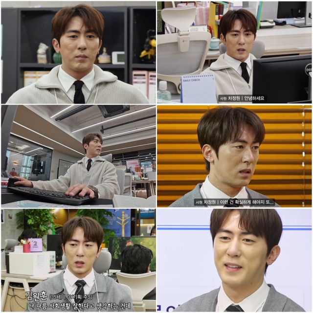 김원훈이 출연 중인 쿠팡플레이 시리즈 ‘직장인들’은 위기의 중소 마케팅 회사 DY기획을 배경으로 AZ와 GenZ 사이에서 ‘낀대’가 되어가는 MZ들의 오피스 생존기를 다룬 작품이다.