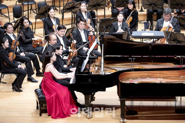 한국과 일본 연주자들로 구성한 오케스트라, 여기에 양국을 대표하는 젊은 연주자들이 함께 주고받는 선율이 인상적이었다. 카덴차(협주곡에서 오케스트라가 반주를 멈추고 독주자가 기량을 발휘하는 부분)에선 선우예권과 이가라시 카오루코가 서로 대화를 나누듯 피아노 독주를 선보여 눈길을 끌었다. 모든 연주를 마친 뒤 두 연주자는 앙코르로 브람스의 헝가리 무곡 제5번을 ‘포 핸즈’(두 명의 피아니스트가 한 대의 피아노를 함께 연주하는 것)로 연주해 박수갈채를 받았다.