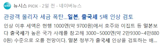 관광객 너무 많이 온다고 최대 5천엔 까지 출국세 인상 검토