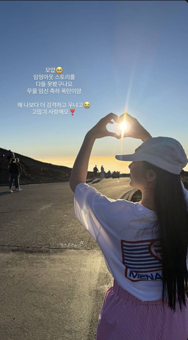 유보화는 하트 포즈를 취한 채 임신을 축하해 준 이들에게 감사한 마음을 드러냈다.