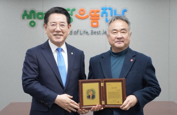 [저스트 이코노믹스 김미경 기자] 김영록 전라남도지사는 5일 서울 중앙협력본부에서 한국에너지공대 설립에 기여한 송재호(제주대학교 명예교수) 국회세종의사당건립위원회 위원장에게 공로패를 수여했다.