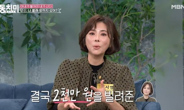 이어 이지영은 “숨긴 게 물건 만은 아니었다. 비자금 사건이 터졌다. 바로 땅”이라고 말해 모두를 놀라게 했다. 그는 “어느날 우편함을 열었는데 남편 이름으로 채권 추심이 와있었다. 평생 구경할 일도 없었는데 이게 뭔가 싶어서 열어 보니 땅을 대출을 껴서 1억 2천을 주고 샀더라”라며 대출 연장을 위한 일부 상환을 하지 못해 경매에 넘어가는 상황이었다고 설명했다.