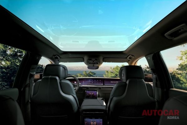 실내는 필라 투 필라 55인치 커브드 디스플레이와 2열 이그제큐티브 시트 패키지를 제공한다. 2열 이그제큐티브 시트 패키지는 수납식 트레이 테이블, 12.6인치 개인 스크린, 리어 콘솔, 무선 충전 패드 2개, 마사지·열선·통풍 시트(14방향 조절 포함), 헤드레스트 스피커 등으로 구성된다.