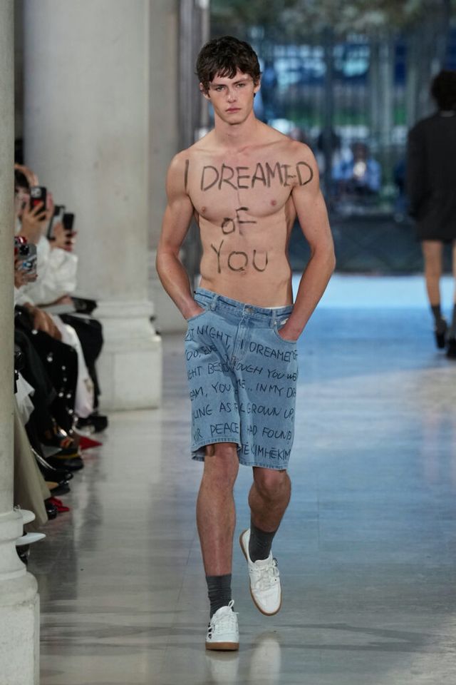 NOTE 꿈을 꾸고, 꿈을 이루고자 하는 사람(dreamer)에 대한 경의. 베개 톱부터 아늑한 이불 드레스, 낙낙한 파자마, 잠들기 전에 쓴 일기 같은 캘리그래피 수트와 연필 클립 장식까지. 침실에서 으레 볼 수 있는 익숙한 것들을 미학적으로 재구성한 후 김해김이란 세계로 대중을 초대했다. 모델들이 한 명씩 차례로 잠드는 퍼포먼스를 펼친 피날레도 인상 깊었던 순간.