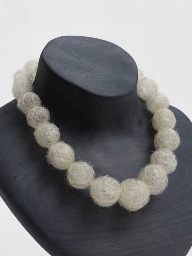 모나 하툼은 또한 신체를 연상하게 하는 작품을 통해 보이지 않던 몸을 바로 이 순간으로 소환합니다. 본인의 머리카락으로 만든 구슬 목걸이, 창자를 꼭 빼닮은 콘크리트 원은 몸을 되돌아볼 수 있는 계기가 되죠.