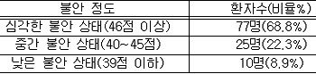 이번 연구 결과, 전체 환자의 68.8%가 심각한 불안 상태(STAI-S 불안 척도 점수 46점 이상)를, 22.3%가 중간 정도의 불안을 기록했다.