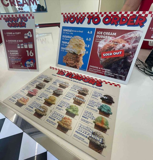 부드러운 치즈 맛에 마카롱 꼬끄의 쫀득한 맛을 더한 ‘치이즈카롱’, 쿠키와 버터가 절묘한 조화를 이루는 ‘쿠버쿠버’ 등 진한 풍미의 아이스크림이 준비되어 있다고. 크럼블 번 속 아이스크림과 베이컨 토핑이 들어간 이색적인 ‘아이스크림 버거’도 선보인다니 이색적인 디저트를 맛보고 싶다면 방문해 보시길.